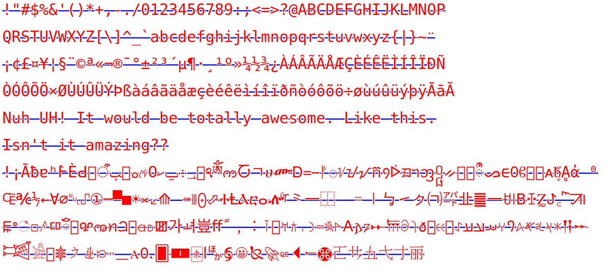Fake Unicode Pa Twitter It Is Applied To Underlines And Overlines But Not Line Through Can Behave Oddly With Tofu Sometimes Underlining And Sometimes Not Possibly It Has Data On The Glyphs
