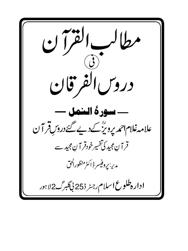 Mutalibul Furqan Fi Duroosul Quran Sura Al Namal By Allama Ghulam Ahmed Parwez
