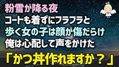 感動 雪が降る中 コートも無しにフラフラ歩く女性を発見 俺 カツ丼作れますか 馴れ初め 感動する話 Youtube