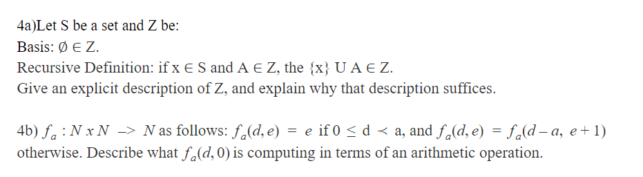 4a Let S Be A Set And Z Be Basis O Ez Recursive Chegg Com