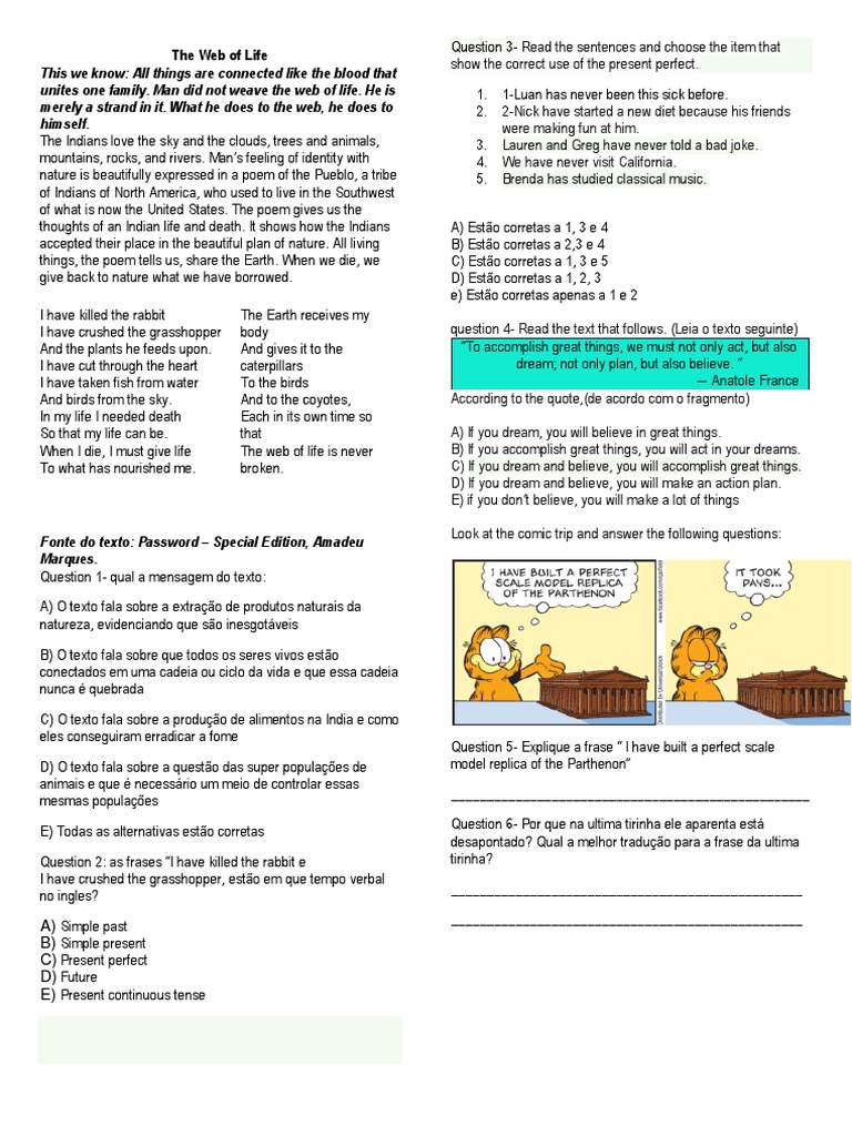 Simulado 9 Ano Ingles Grammar Language Mechanics