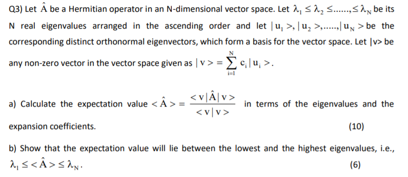 Solved Q3 Let A Be A Hermitian Operator In An N Dimensio Chegg Com