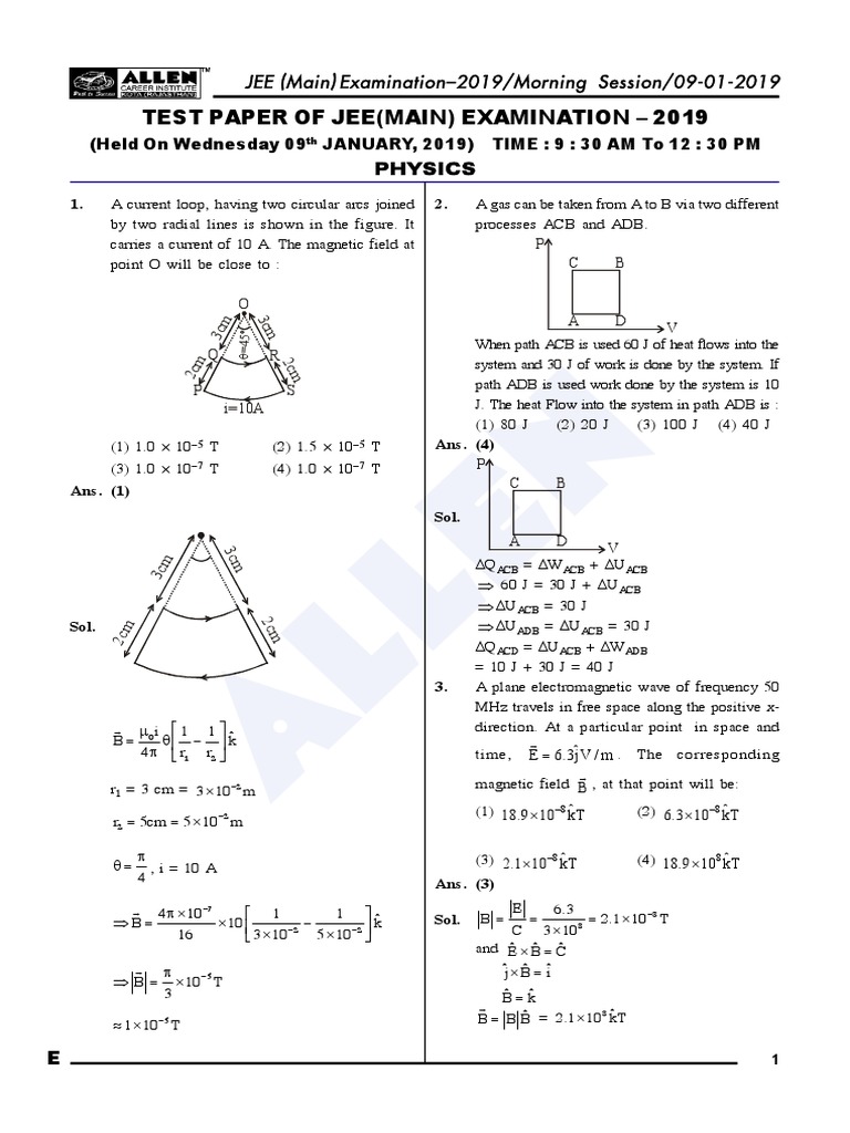 Jee Mains19 All 16 Papers With Solution Lens Optics Radioactive Decay
